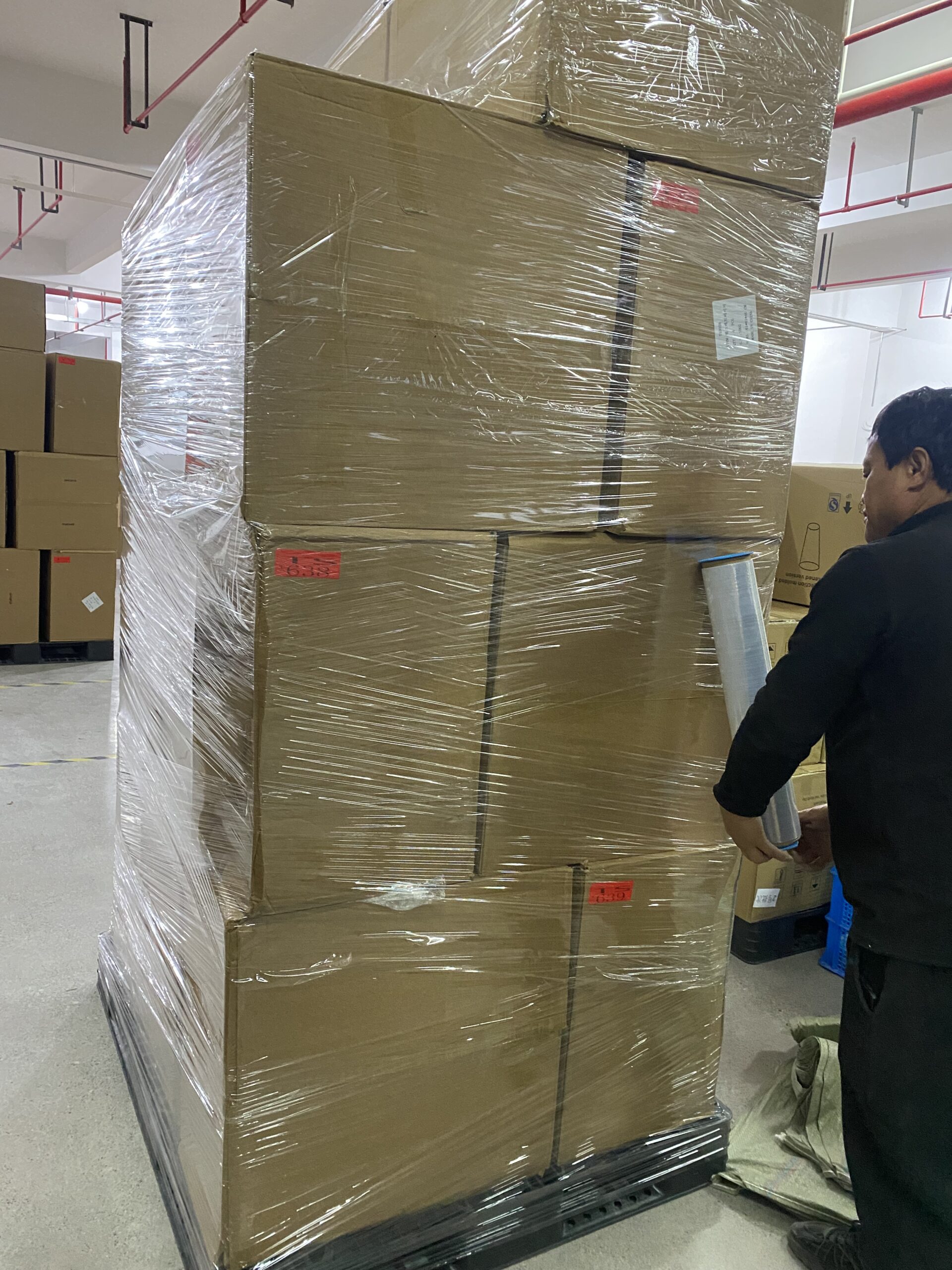 발주 상품이 저희 소싱차이나 본사 창고에 도착 후 검수, 랩핑작업 시작
